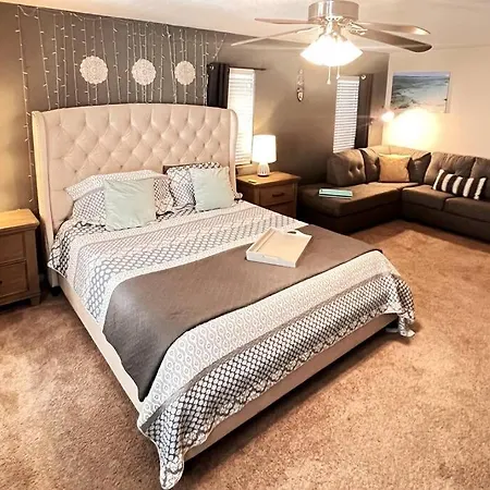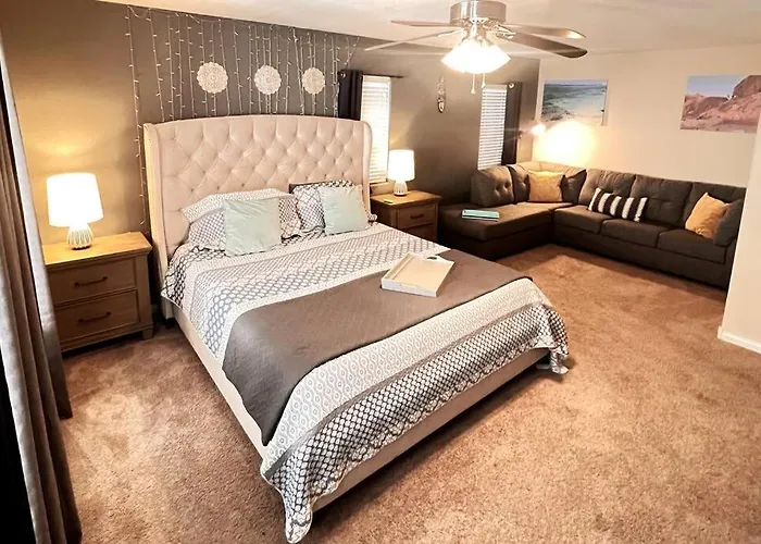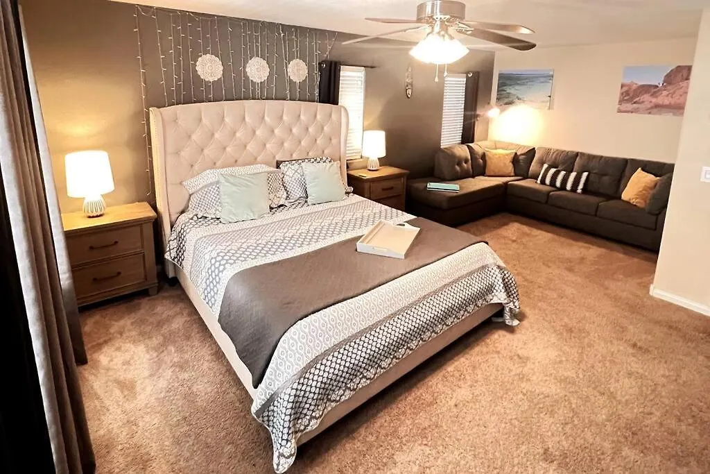 Among other facilities at 4Br King Bed Evcharger, 10Min To Strip Raiders Airport! Villa coffee and tea making machines, a fridge, and an oven are provided for self-catering. Guests can also dine onsite in a dining area. Monorail - Flamingo/ Caesar's Palace railway station is 16 km away, while McCarran International airport is 20 km from the Las Vegas holiday home.